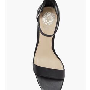 Step into sophistication with Vince Camuto's black sandals, featuring a chic ankle strap and a comfortable block heel. The minimalist design with a wide front strap offers a versatile and modern look, perfect for elevating any outfit. These sandals seamlessly combine style and comfort, making them a must-have addition to your wardrobe.