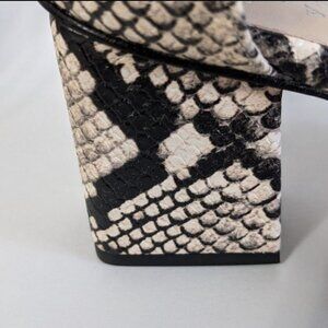 Vince Camuto Margry Snake Print Block Heel Sandals, Size 8M(38.5). 2.5" Block Heel, Ankle Strap, Faux Leather Upper. Like New Condition, Pre-Owned