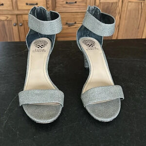 Vince Camuto | Marlees High Heels Silver Court Metallic Ankle Strap OpenToe | 10