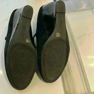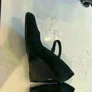 Almost new black suede Mary Jane pumps with wedge heel . Worn once . Size 9.5