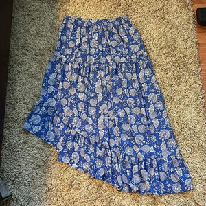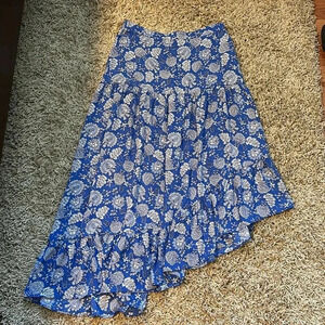 Vince Camuto Maxi Skirt Womens Size Medium Blue Paisley Asymmetrical Tiered