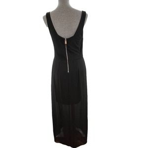 Vince Camuto Maxi Tank Dress Womens Sz Large Black Sheer Overlay Stretch Slits