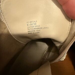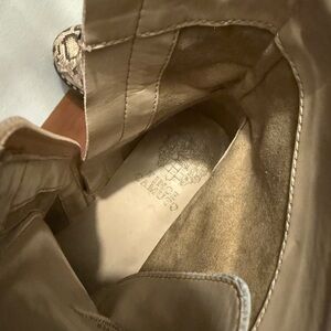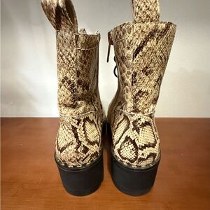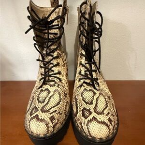 Vince Camuto Mecale Chunky Heel Combat Booties in Natural Snake. Lace-up moto boots, with side zipper closure and metal stud details. Size 8.5. Heel height in approx 2.5 inches. Only worn 1-2 times, still in like new condition.