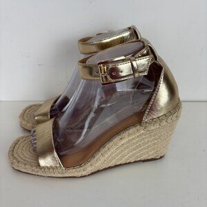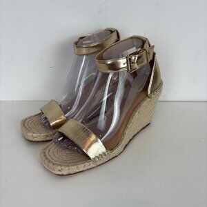 Vince Camuto Medrinna Metallic Gold Espadrille Wedge Sandals Size 9.5