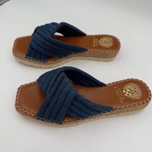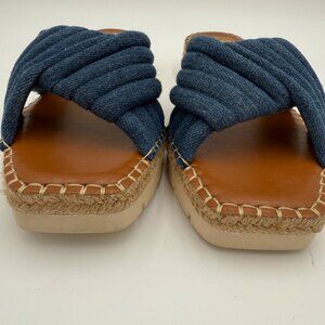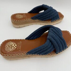 Vince Camuto Melysa Crossband Slide Sandals Denim Slip-on Channel Quilting Jute