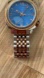 Description: Gorgeous blue dial with rose gold-tone hands and markers. Date dial. Two-tone stainless and rose gold-tone weave bracelet with push button clasp. Just cleaned and serviced with a new battery installed. Works well!