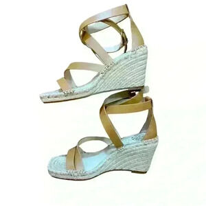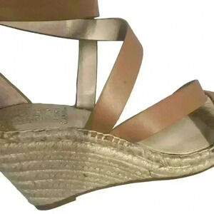 Vince Camuto Mesteria Espadrille Wedge Sandal Size 8.5 Tan Leather Strap Casual