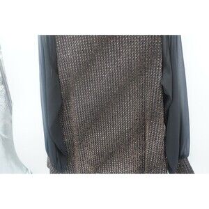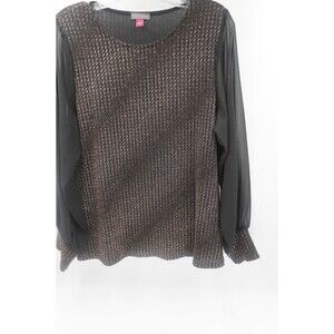 Vince Camuto Metallic Black & Gold Sparkle Knit Blouse Sheer Chiffon Sleeve Sz L