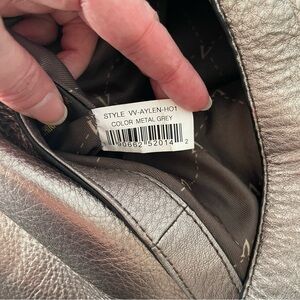Vince Camuto Metallic Gray Pebbled Leather Shoulder Bag Purse