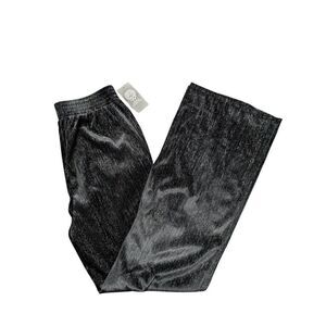 Vince Camuto Metallic Pleated Wide-Leg Elastic Waist Black Trouser Women's 8