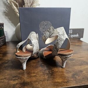 Chic Vince Camuto heels with a metallic snake pattern. Perfect for adding flair to any outfit.