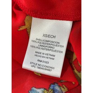 This Vince Camuto pleated skirt in red features a vibrant floral print, flowy design, and elastic waist for comfort. Made of lightweight polyester with lining.
