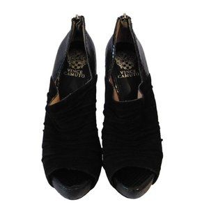 Vince Camuto Miki Black Leather Suede Peep Toe Stiletto Pumps Size 7.5