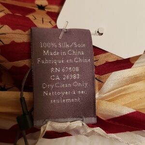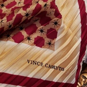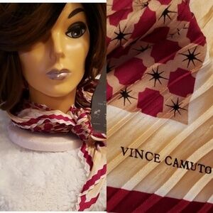 100% Silk scarf This is a beauty!!!! What says class and style like Vince Camuto... Come to my closet and let me style you!! Wear this gem lots of ways. Around the neck loose or in a bow. Around your hair with a flair... or if you are a bag girl like me tie around your favorite luxe bag to give it a different flavor...😊😁