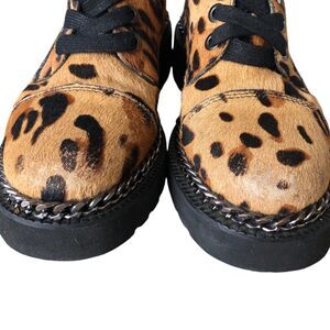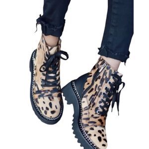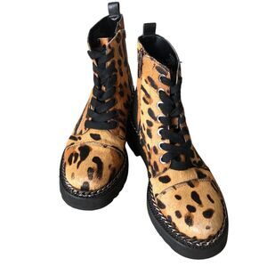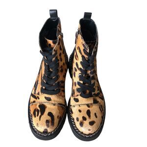 Vince Camuto Mindinta Cowhair and Leather Leopard Print Combat Ankle Boots 5.5