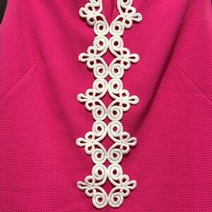 Vince Camuto Mini Dress 6 Sheath Appliqué Hot Pink White Vibrant Stretch Zipper