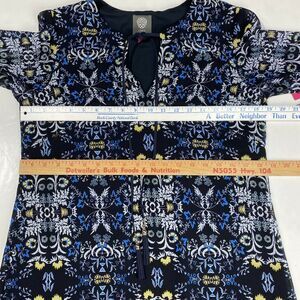 Vince Camuto Mini Dress (Tag Size 6) Womens Navy Blue And Yellow Floral Boho Dress With Tiered Ruffled Sleeves And Tassels NWT Brand New