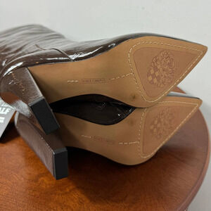 Crafted with a relaxed, over-the-knee silhouette and tapered, tall heel, this glamorous boot is an instant confidence booster. The style is designed in crinkle patent, with seamed construction, wide-calf sizing and a notched topline that makes it as chic with dresses as with tucked-in jeans.