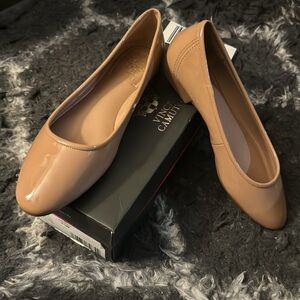 Authentic Vince Camuto Minndy Flats in a beige/“dark blush” patent leather, size 7.5. Shoes are brand new in box and never have been worn. The shoes will ship in the original box.