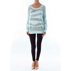 Vince Camuto Mint Green Open Knit Striped Sweater Women's XS Pullover Rayon