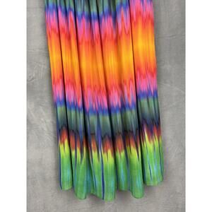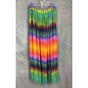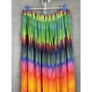 The Vince Camuto Mirror Rainbow Maxi Skirt in size 2 is a vibrant and stylish piece perfect for summery, festival-inspired outfits. The tie-dye pattern and multicolor design add a fun and hipster touch, while the long skirt length and bohemian style make it perfect for casual or party occasions. Made from polyester, this skirt is machine washable for easy care, and features a zip closure as well as being lined for added comfort. Wear this skirt in the spring, summer, or fall to bring a touch of artful, rainbow-inspired flair to your wardrobe.