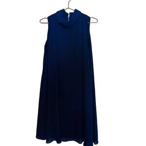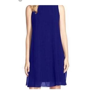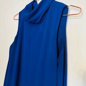 Vince Camuto Mock Neck Royal Blue Chiffon Trapeze Dress Size 8