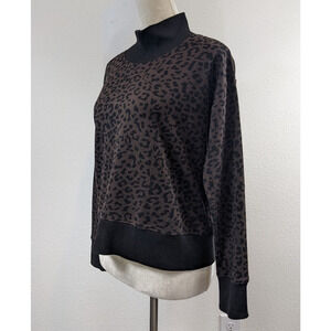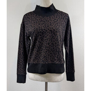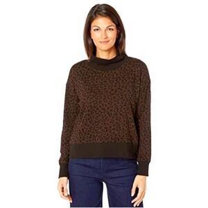 Vince Camuto Mock Neck Sweatshirt Brown Black Leopard Print Sz XXS Long Sleeve