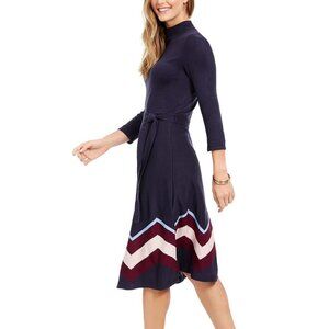 A mock-neck balances the elongating silhouette of this dress from Vince Camuto, cinched at the waist to help you find your best fit.