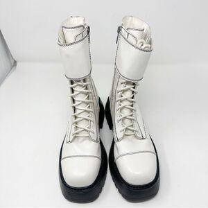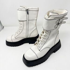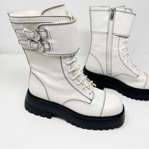 Vince Camuto Monchia White Leather Combat Platform Boots 7
