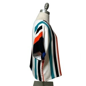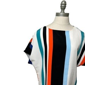 Vince Camuto Multi Color Striped Boxy Oversized Short Sleeve Crop Blouse Small