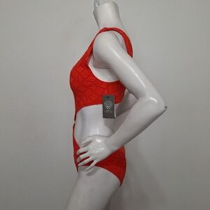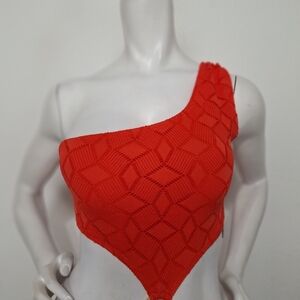 Vince Camuto "NEW" Tangerine Retro Cutout One Shoulder Swimsuit Size 8