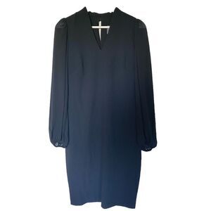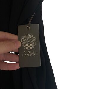 Vince Camuto NEW black sheer sleeve dress vneck slit pleated back size 2