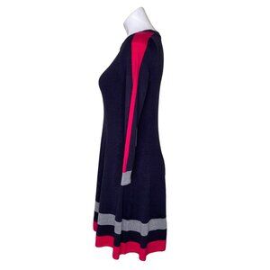 Vince Camuto NWT $128 Knit Fit & Flare Dress, Navy Red Gray Striped Trim Size S