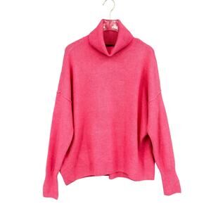 Vince Camuto NWT Bright Pink Plush Knit Oversized Long Sleeve Turtleneck Sweater