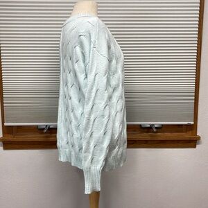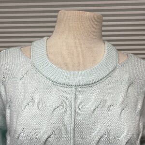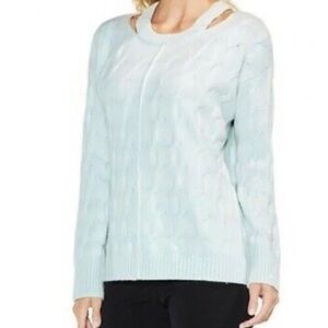 Vince Camuto NWT Pullover Luxe Aqua Mist Cable Knit Crew Neck Cut Out Sweater
