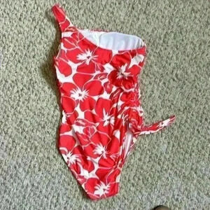 Vince Camuto NWT Tangerine and White Floral One Shoulder One Piece Swimsuit MSRP $108 Women Sz 10