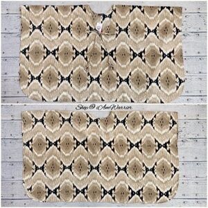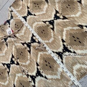 Super chic & unique is this NWT Vince Camuto light weight batik print in safari khaki colorway with tassel neck tie. Perfect to throw over a tank or tee with denim or pants. Size medium, see photos for measurements. Please note: this is not completely open,but has arm holes. Bust measurement shown is from pit to pit seam. Retailed at $99 & sold out at Nordstrom & other fine retailers.