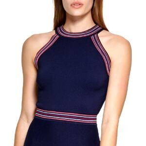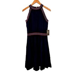 Vince Camuto Navy Blue Contrast-Trim Fit & Flare Halter Dress Size L