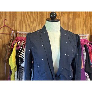 Vince Camuto Navy Blue Polka Dot Soho Pindot Blazer Button Closure Sz 2 NWOT