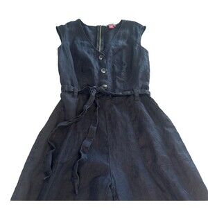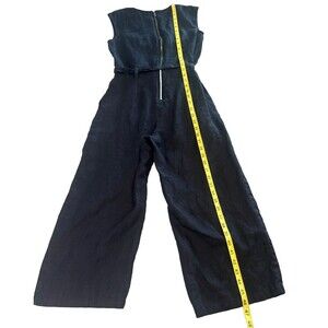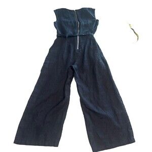Vince Camuto Navy Blue Sleeveless Belted Jumpsuit Buttons Zipper Wide Leg Sz XXS