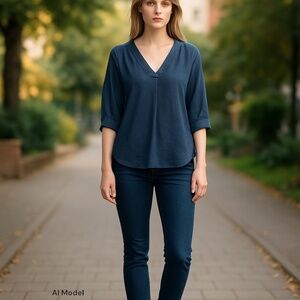 Vince Camuto Navy Blue V Neck Top Size Medium
