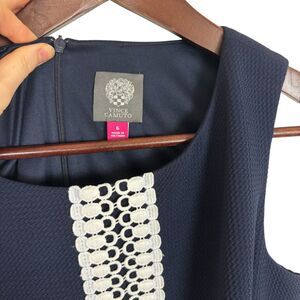 Vince Camuto Navy Blue White Crochet Embroidered Sleeveless Dress Women’s 6