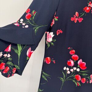 Vince Camuto Navy Floral Bell Sleeve Shift Dress Size 8 Womens knit