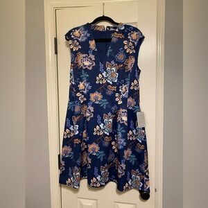 Vince Camuto Navy Floral Scuba Fit & Flare Dress