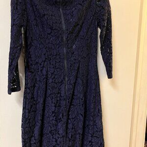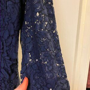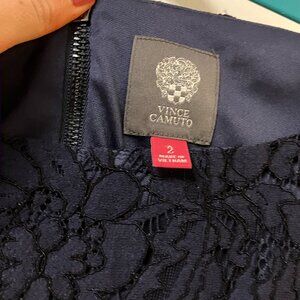 Vince Camuto Navy Lace Overlay Shirttail Hem Shift Designer Dress