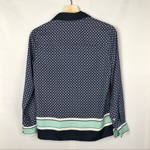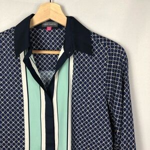 Vince Camuto Navy & Mint Green Printed Long Sleeve Button Down XS Petite