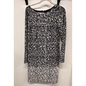 Vince Camuto Navy White Print Shift Dress Size 10 NWT Long Sleeve Office Work