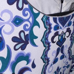 Fully lined Size 8 with a zipper back. Some stretch in the fabric. Like new