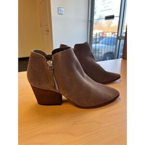 Vince Camuto Nethera Gray Perforated Suede Side Side Zipper Booties sz 7.5 EUC