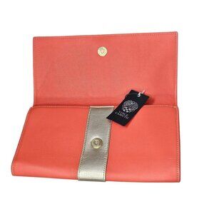 Vince Camuto New Genuine Leather Animal Reptile Snakeskin Orange Tan Clutch Bag NWT
